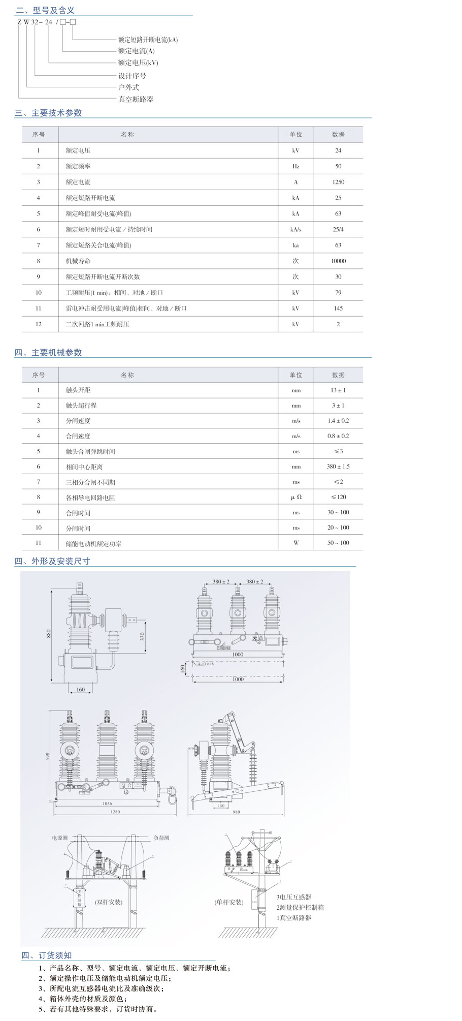 ZW口-24(27kV戶外交流高壓真空斷路器(以F簡稱斷路器是額定電壓為24kV, 50Hz三相交流的戶外配電設(shè)備。主要用于配電網(wǎng)開斷、關(guān)合電力系統(tǒng)中的負(fù)荷電流、過載電流及短路電流。適用于變電站及工礦企業(yè)配電系統(tǒng)中作保護(hù)和控制之用,更適用于農(nóng)村電網(wǎng)及頻繁操作的場所。