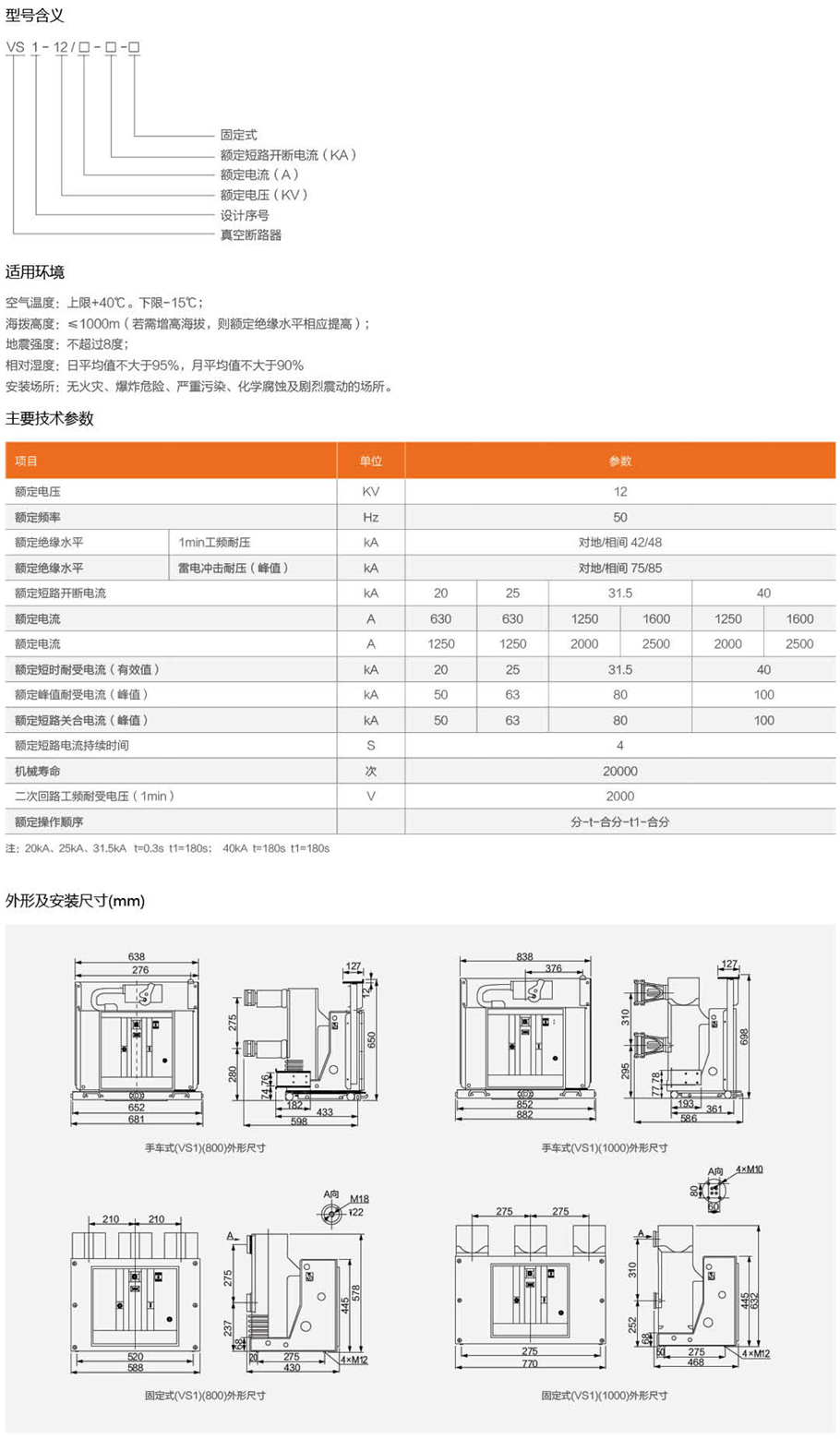 VS1-12型戶內(nèi)高壓真空斷路器,系三相交流50Hz額定電壓為12KV電力系統(tǒng)的戶內(nèi)開關(guān)設(shè)備,作為電網(wǎng)設(shè)備、工礦企業(yè)動力設(shè)備的保護(hù)和控制單元。適用于要求在額定工作電流下的頻繁操作,或多交開斷短路電流的場所。