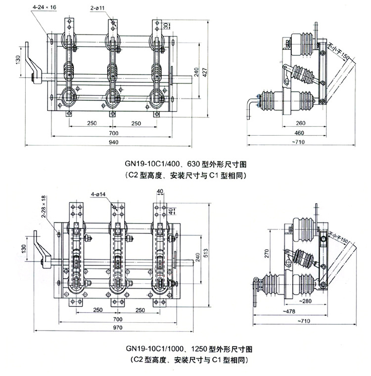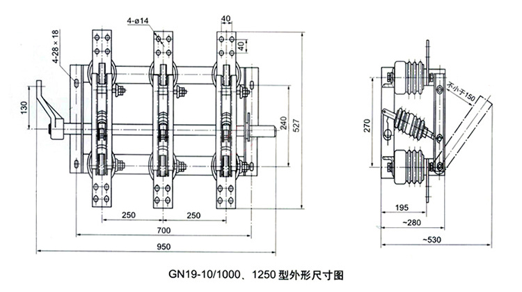 GN19-10 (GN19-10C)系列戶內(nèi)高壓隔離開關(guān)適用于交流5Hz,額定工作電壓6,10kv: 額定工作電流200、630、 1250A 的電力系統(tǒng)中。作為有電壓無負(fù)荷情況下的分?jǐn)啵]合電路的戶內(nèi)開關(guān)設(shè)備使用。此隔離開關(guān)配用CS6-1型手力操動機(jī)構(gòu)。