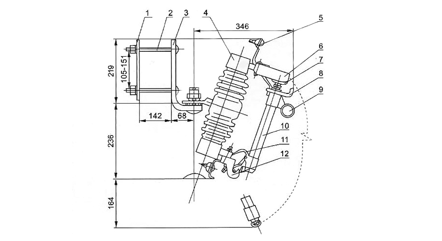 熔斷器是由基座和消弧裝置兩大部分組成,滅弧管下端裝有可能轉(zhuǎn)動(dòng)的彈簧支架,始終使熔絲處于緊張狀態(tài),以保證滅弧管在合閘位置的自鎖,線路與變壓器過(guò)載或短路中,熔絲熔斷,熔絲迅速?gòu)臏缁」苤谐槌?,滅弧管設(shè)計(jì)為逐級(jí)排氣式解決在同一熔斷器上開(kāi)斷大小電流的矛盾。