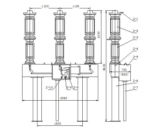 1.1 LW9—72.5/T2500—31.5型高壓六氟化硫斷路器系戶外三極交流50Hz高壓電器設(shè)備,主要用于輸變電線路的保護,也可作聯(lián)絡(luò)斷路器使用。斷路器為三極組裝在一個框架上,不能進行單極操作。