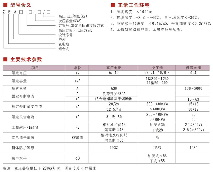 ZBW(N)型系列組合式變電站是將高壓電器設(shè)備、高壓器、低壓電器設(shè)備等組合成緊湊型成套配電裝置,用于城市高層建筑、城鄉(xiāng)建筑、居民小區(qū)、高新技術(shù)開發(fā)區(qū)、中小型工廠、礦山油田以及臨時工作用電等城所,作配電系統(tǒng)中接受和分配電能之用。